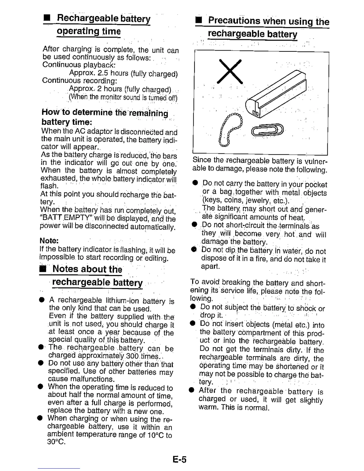 Sharp MD-M11A - Rechargeable Battery Operating Time; Precautions When Using the Rechargeable Battery; Notes about the Rechargeable Battery