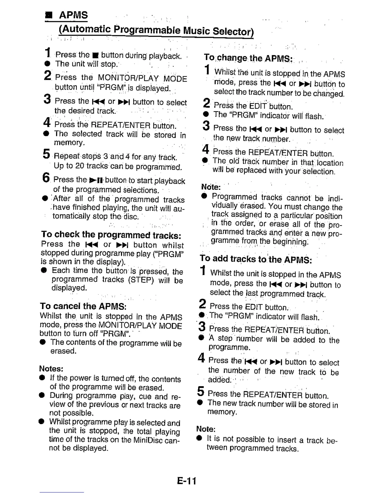 Sharp MD-M11A - Apms; To Check the Programmed Tracks; To Cancel the APMS; To Change the APMS