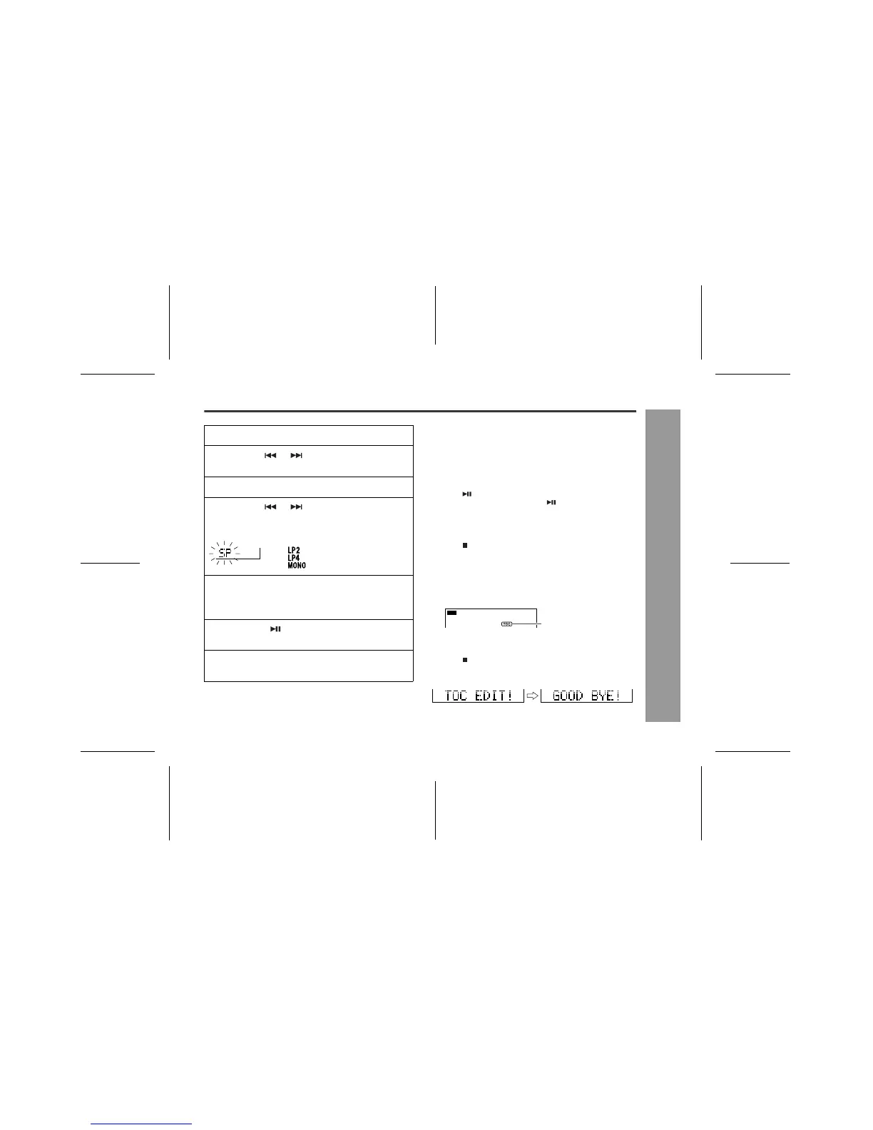 Whilst "TOC" is displayed, the MiniDisc recorded contents