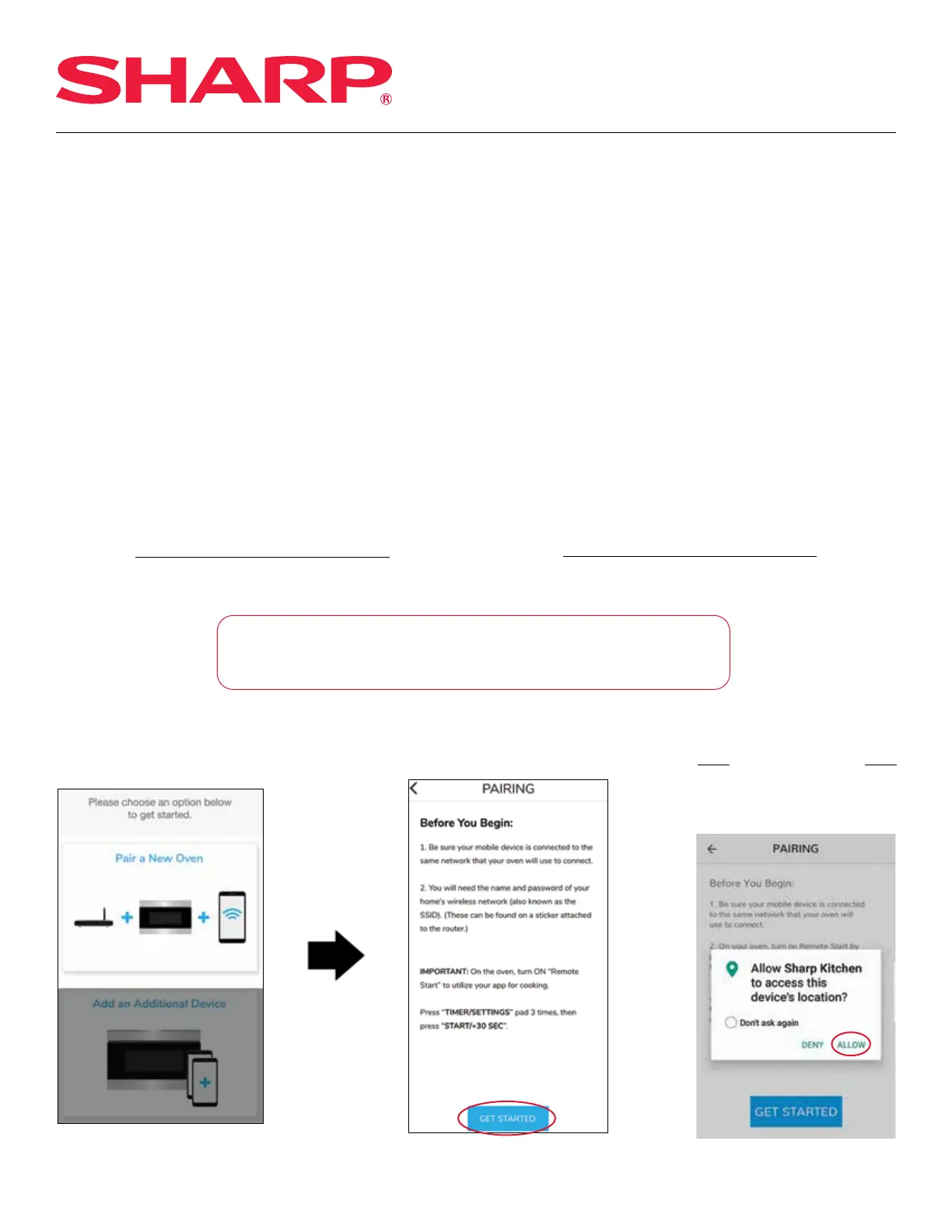 • Launch the Sharp Kitchen app and sign in. Follow instructions below to connect your