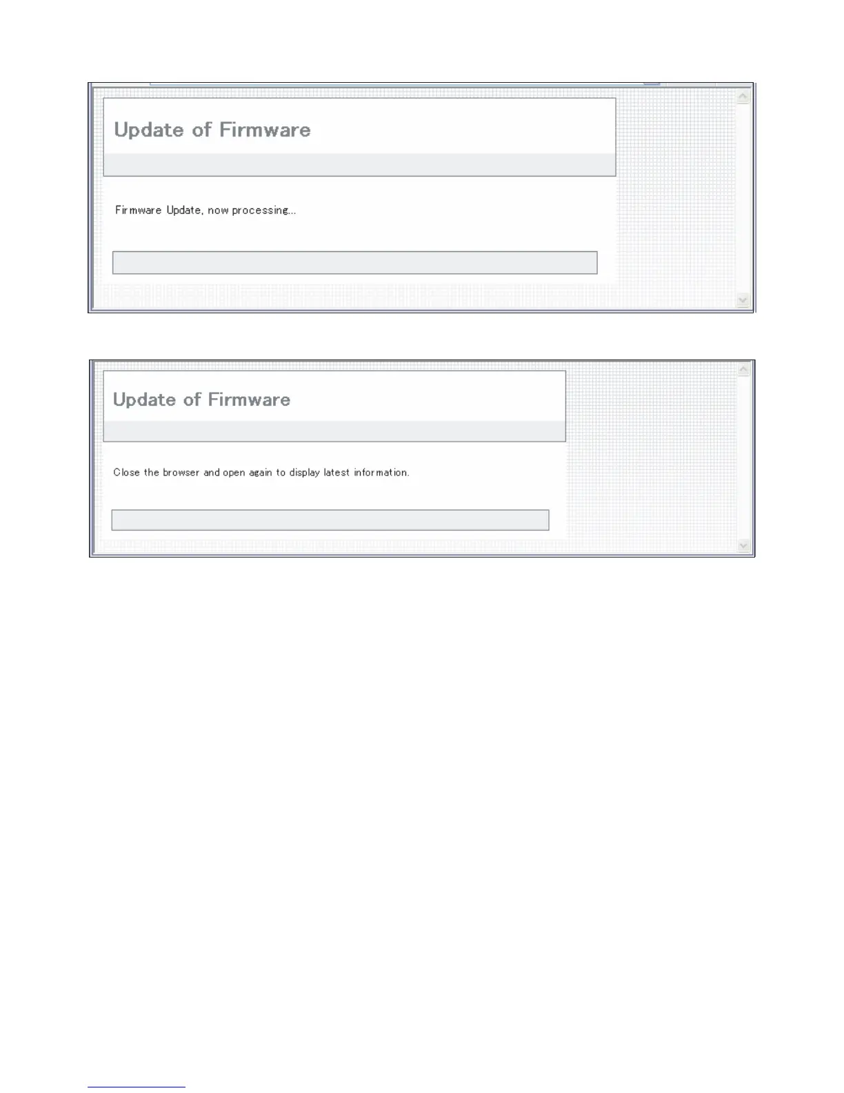 Update processing begins. While processing takes place, “Firmware Update, now processing...” appears.