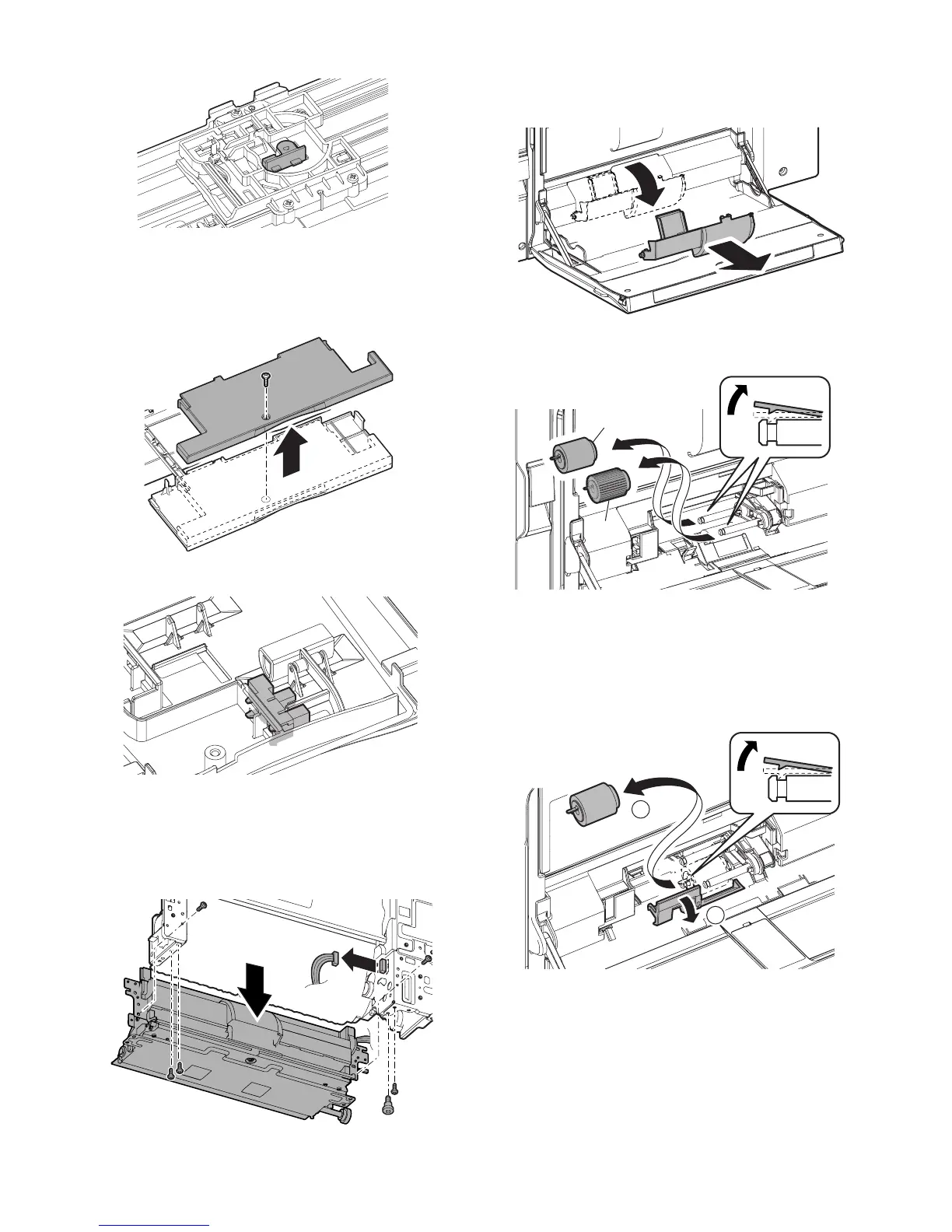 2) Remove the paper pickup roller (A) and the paper feed roller