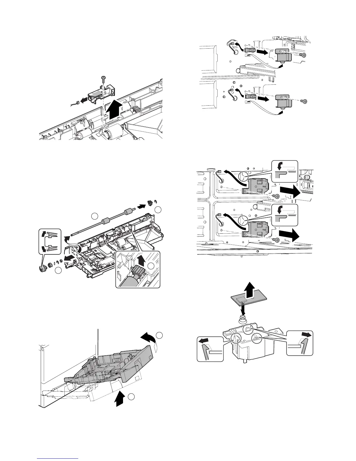 3) Release the pawl, and remove the tray 1, 2 detection unit.