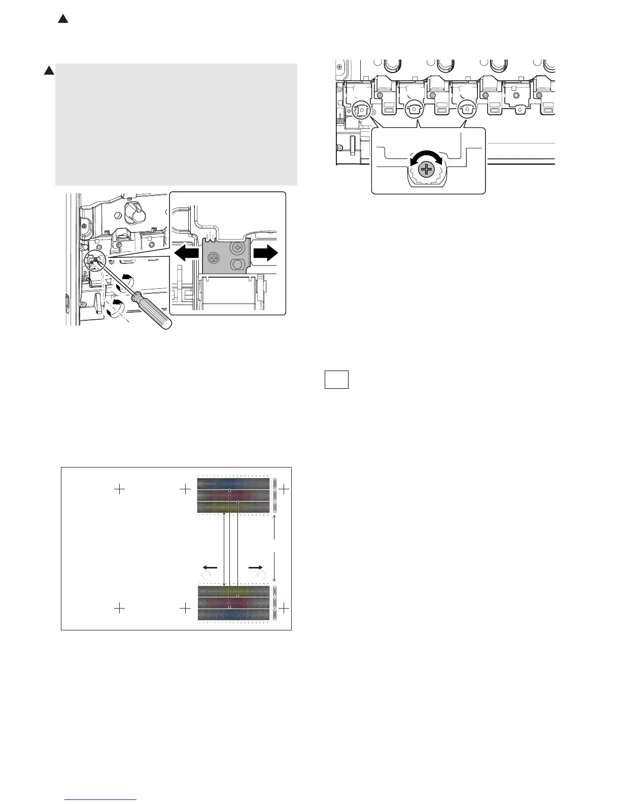 11) Turn the image skew adjustment screw of the target color to