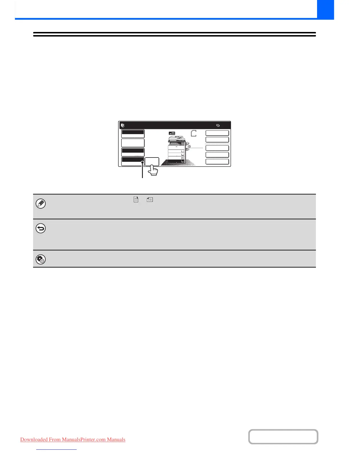 To return the ratio setting to 100%, touch the [Copy Ratio] key to display the ratio menu and then touch the [100%] key.