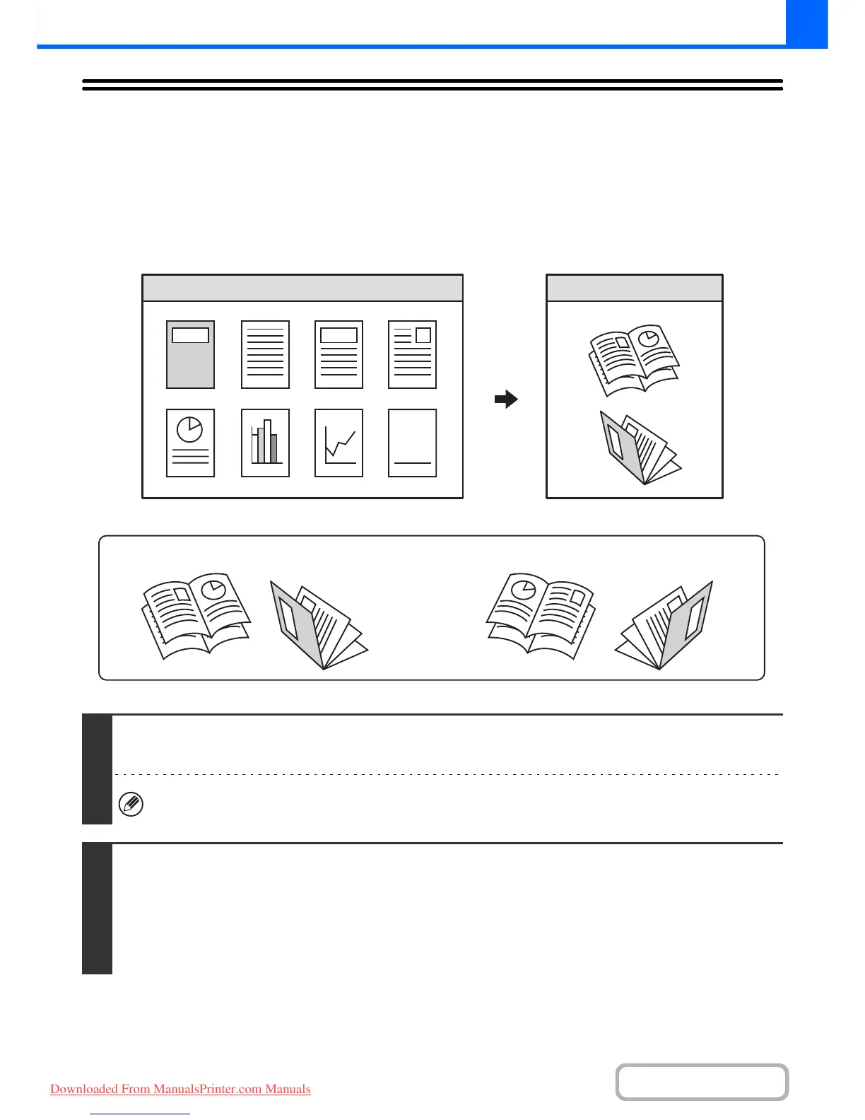 This function is convenient for arranging copies into an attractive booklet or pamphlet.