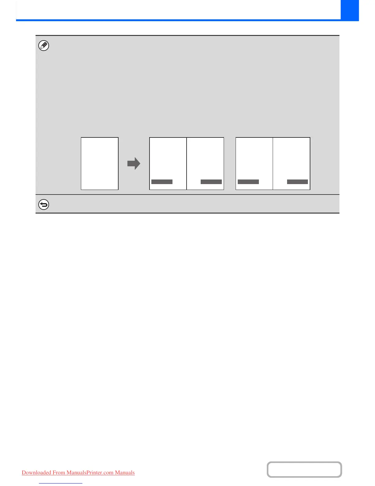 Example: When four pages are copied using pamphlet copy and the page number format is "1, 2, 3...", the result is as