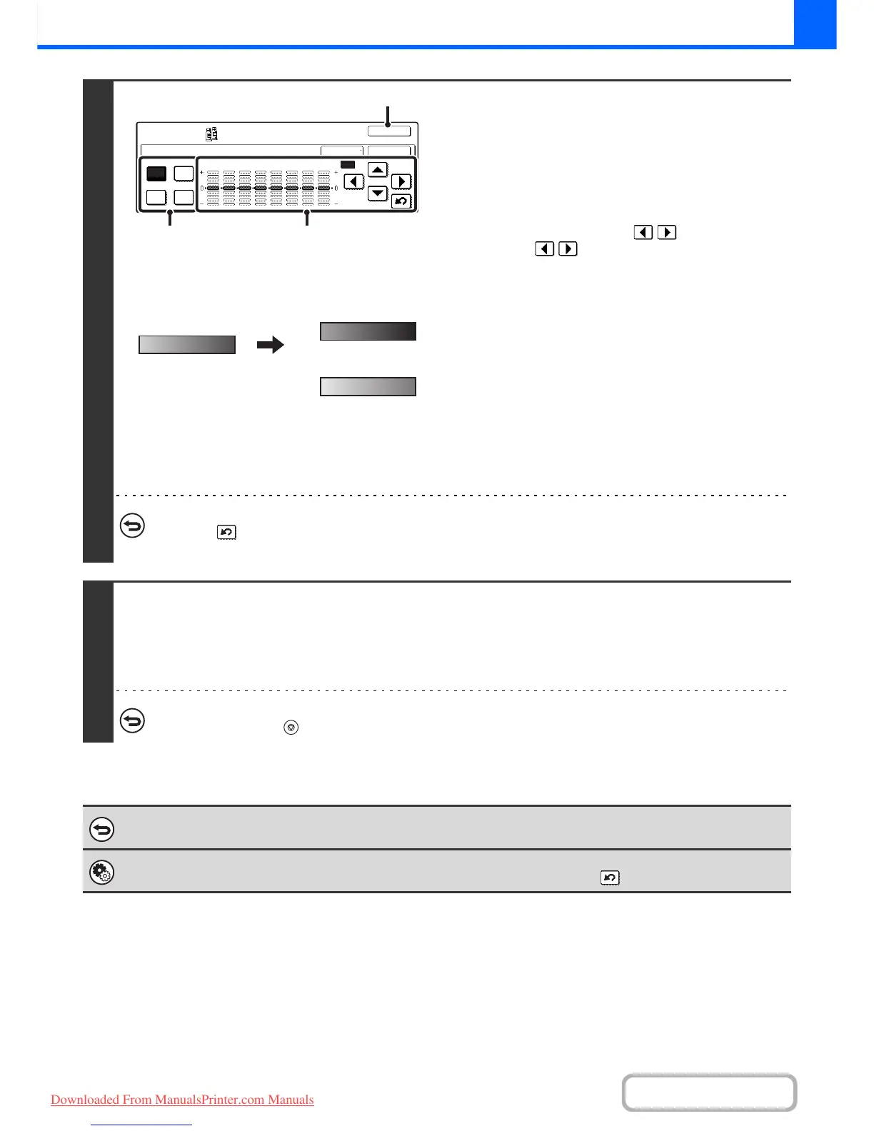Touch the key. The values of all eight gradations will return to the default colour balance values.