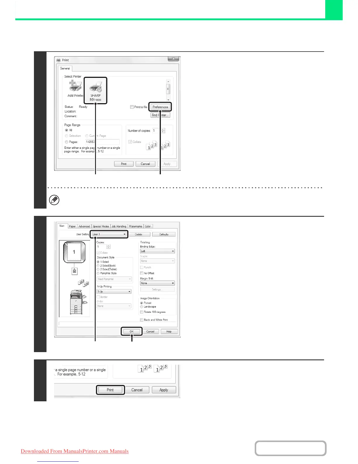 (1) Select the user settings that you wish to