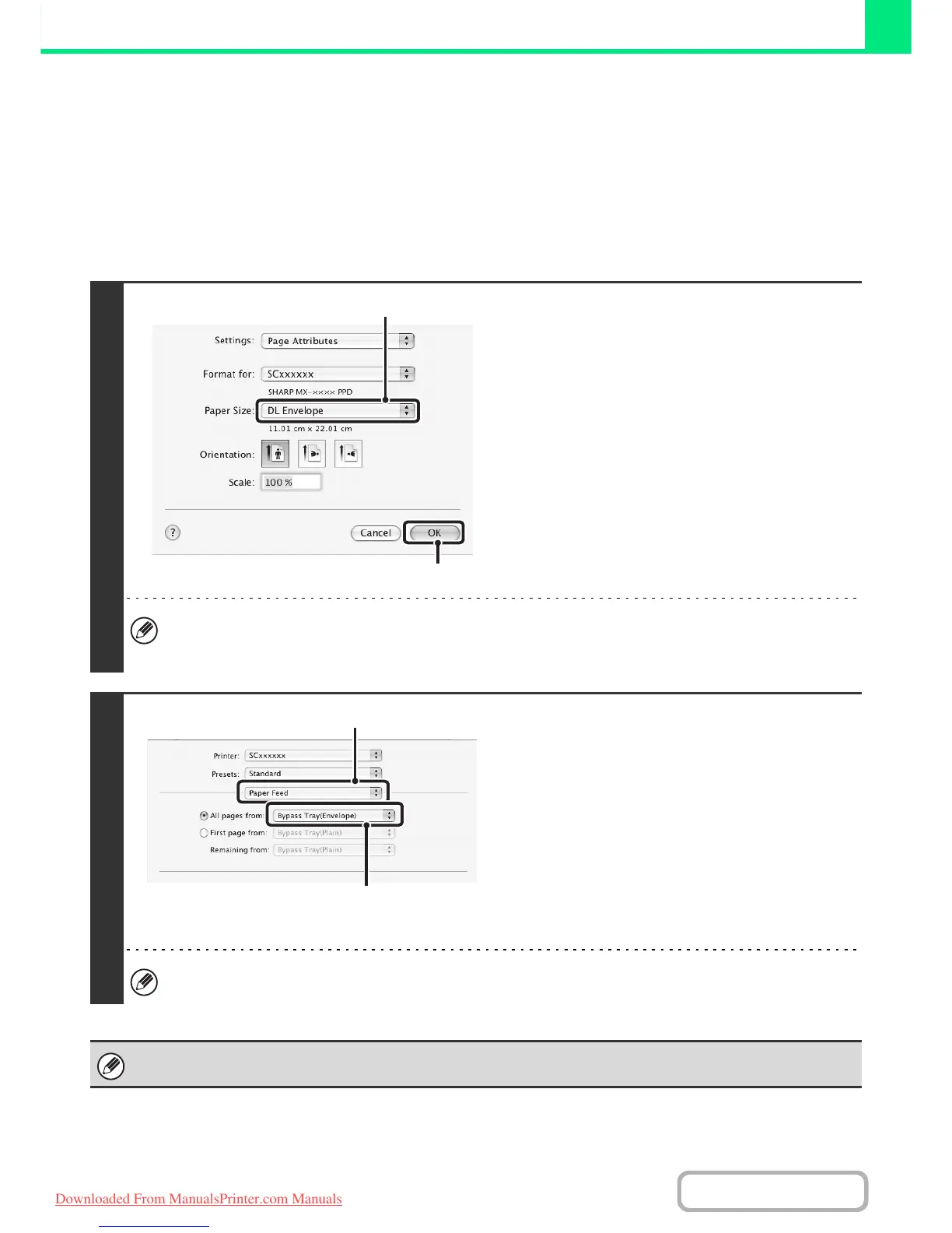 • In Mac OS 9, select [Bypass Tray(Envelope)] from