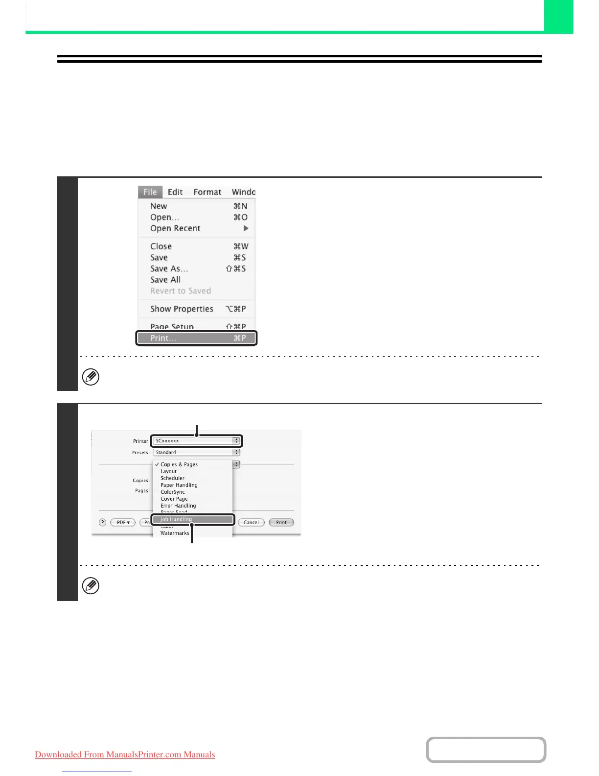 • In Mac OS X v10.5 to 10.5.6, select [Job Handling]