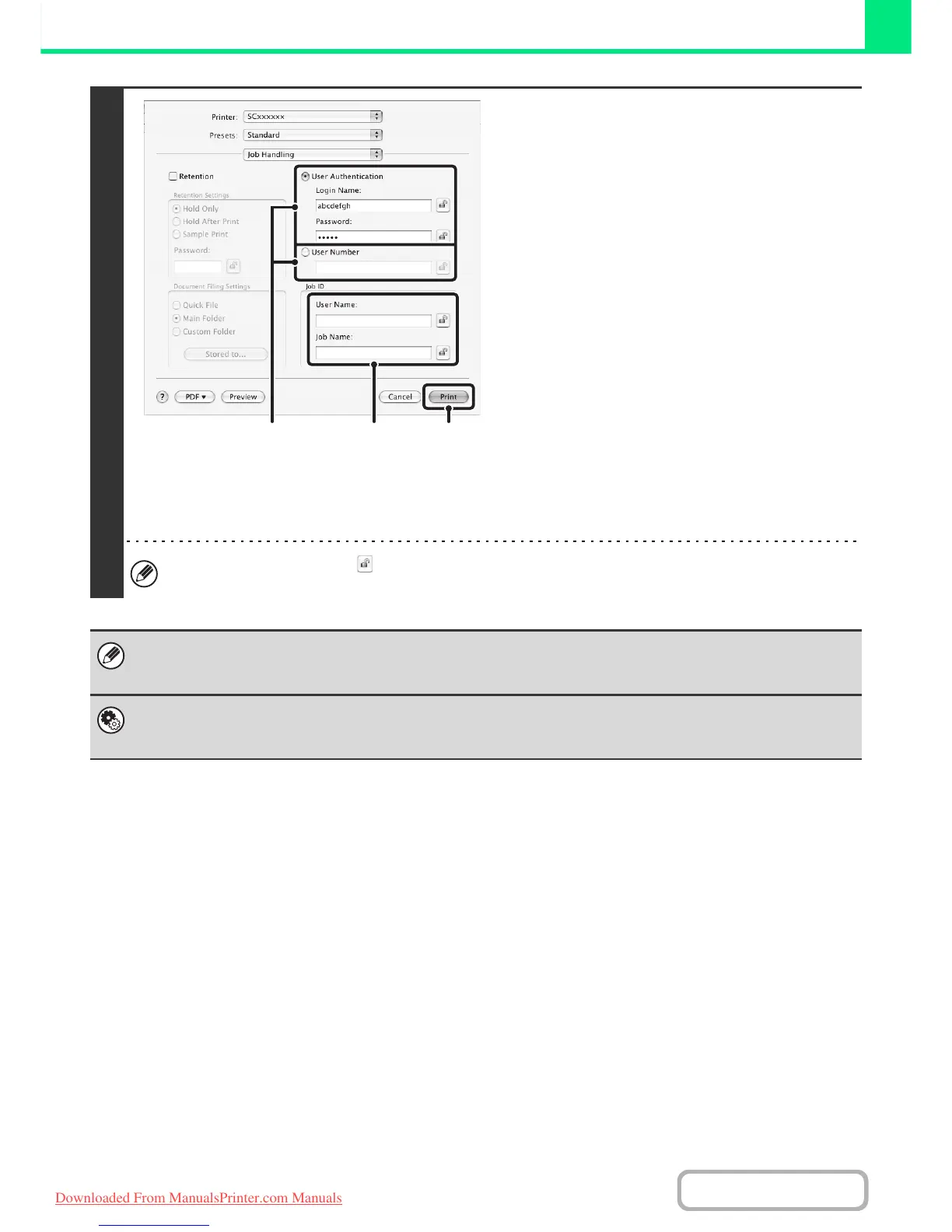 is enabled, printing is not allowed when user information is not entered or incorrect information is entered.