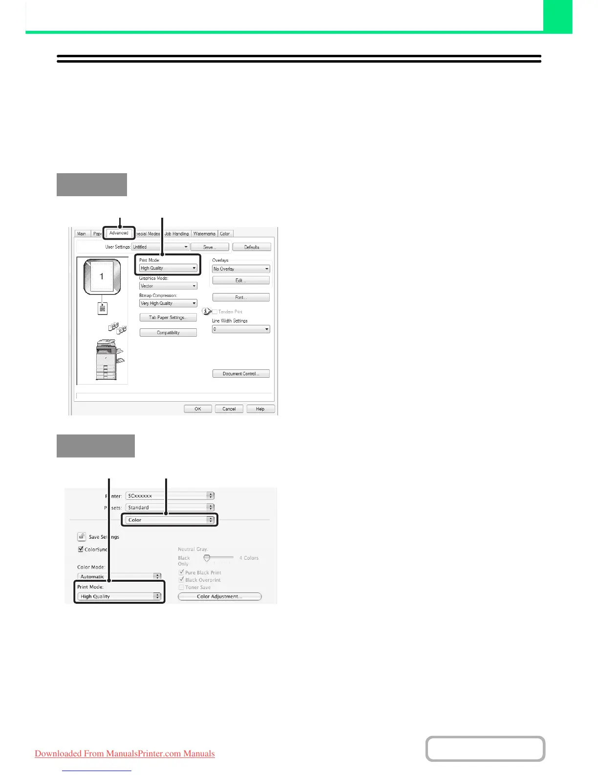 This section explains the procedure for selecting a print mode setting. The "Print Mode Settings" consist of the following