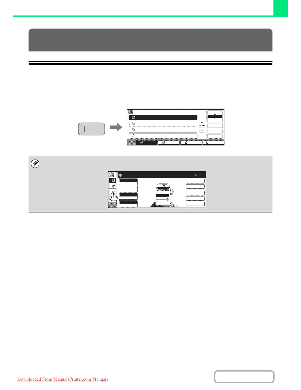 The job status screen is displayed when the [JOB STATUS] key on the operation panel is pressed. The job status