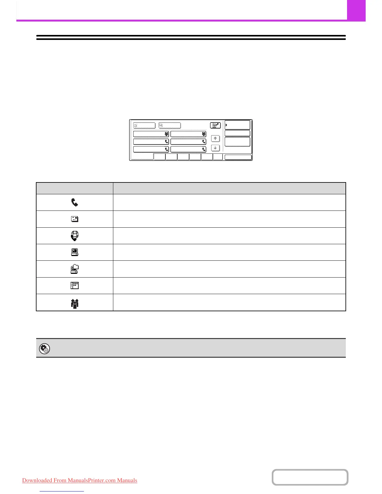 When destinations of other scan modes are stored in addition to fax destinations, an icon indicating the mode appears