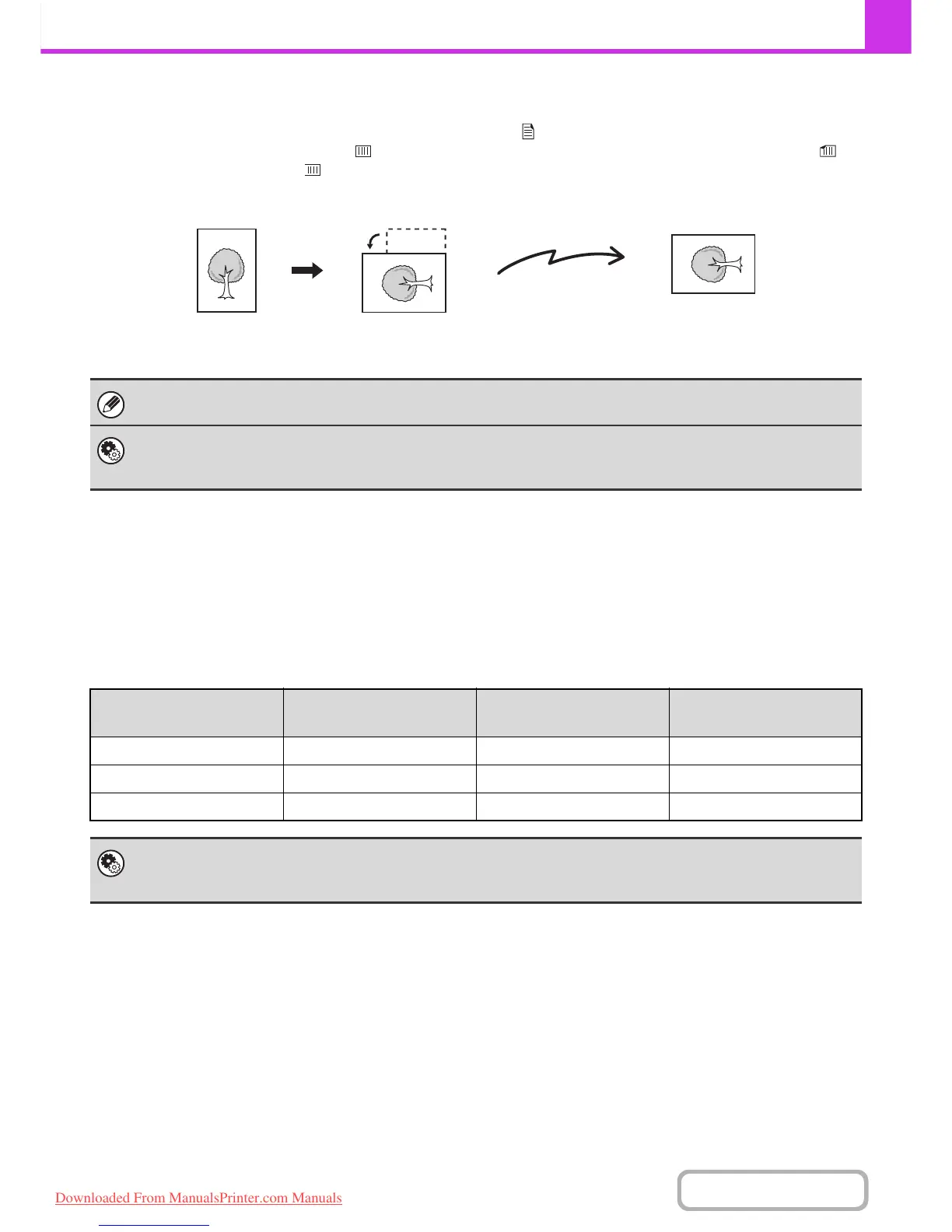 When an A4 (8-1/2" x 11") original is placed in vertical orientation ( ), the image is automatically rotated 90 degrees