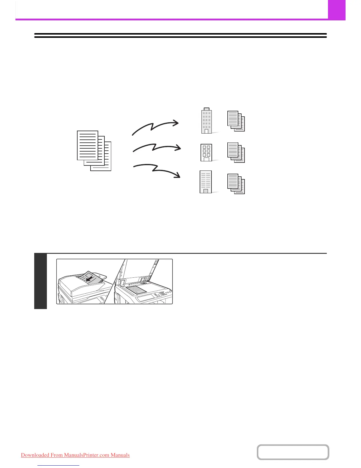 This function is convenient when you need to send the same fax to multiple destinations, such as sending a report to