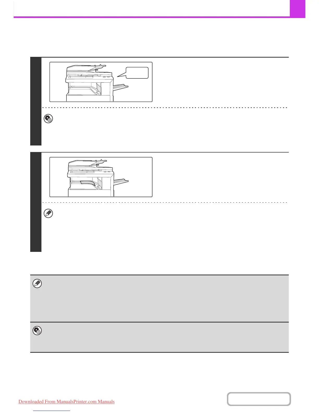 • If printing of a copy job or print job is in progress when a fax is received, the fax will not be printed until the previously