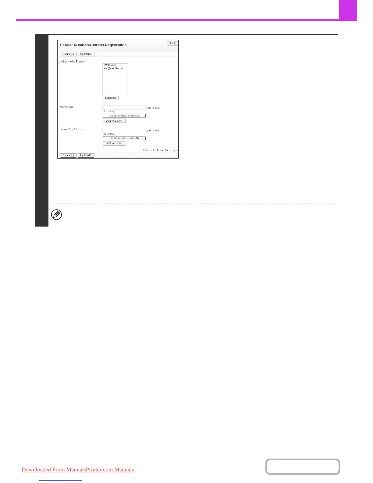 • To delete an entered address, select the address in "Address to be Entered" and click the [Delete] button.