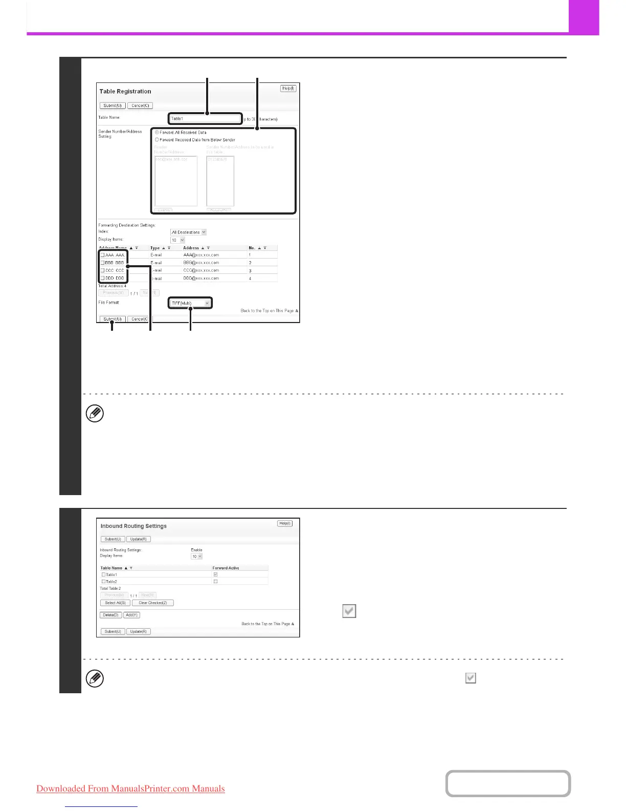 • If you wish to select a group of addresses for the forwarding destination, you can only select a group that contains