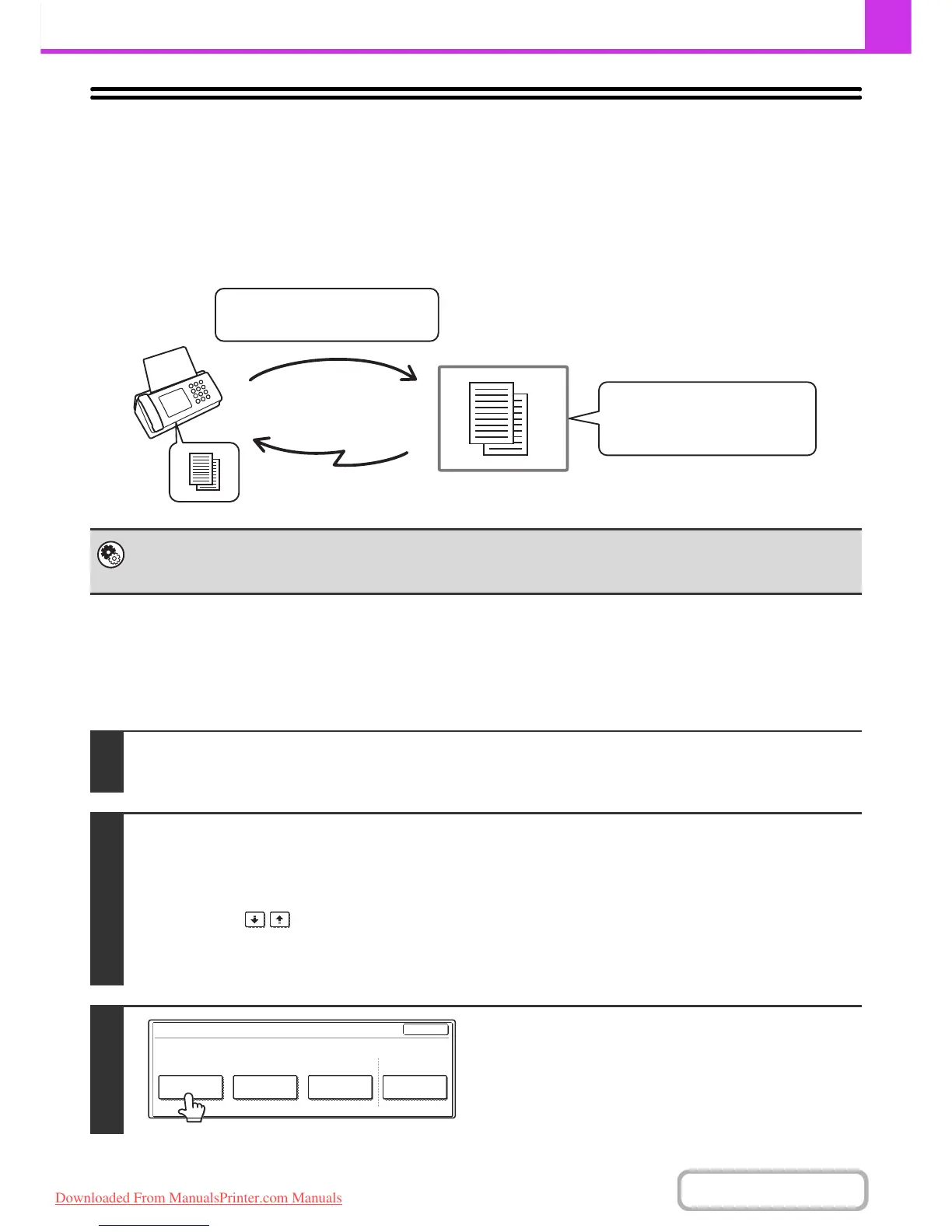 When your machine receives a transmission request from another machine, this function sends a fax stored in an