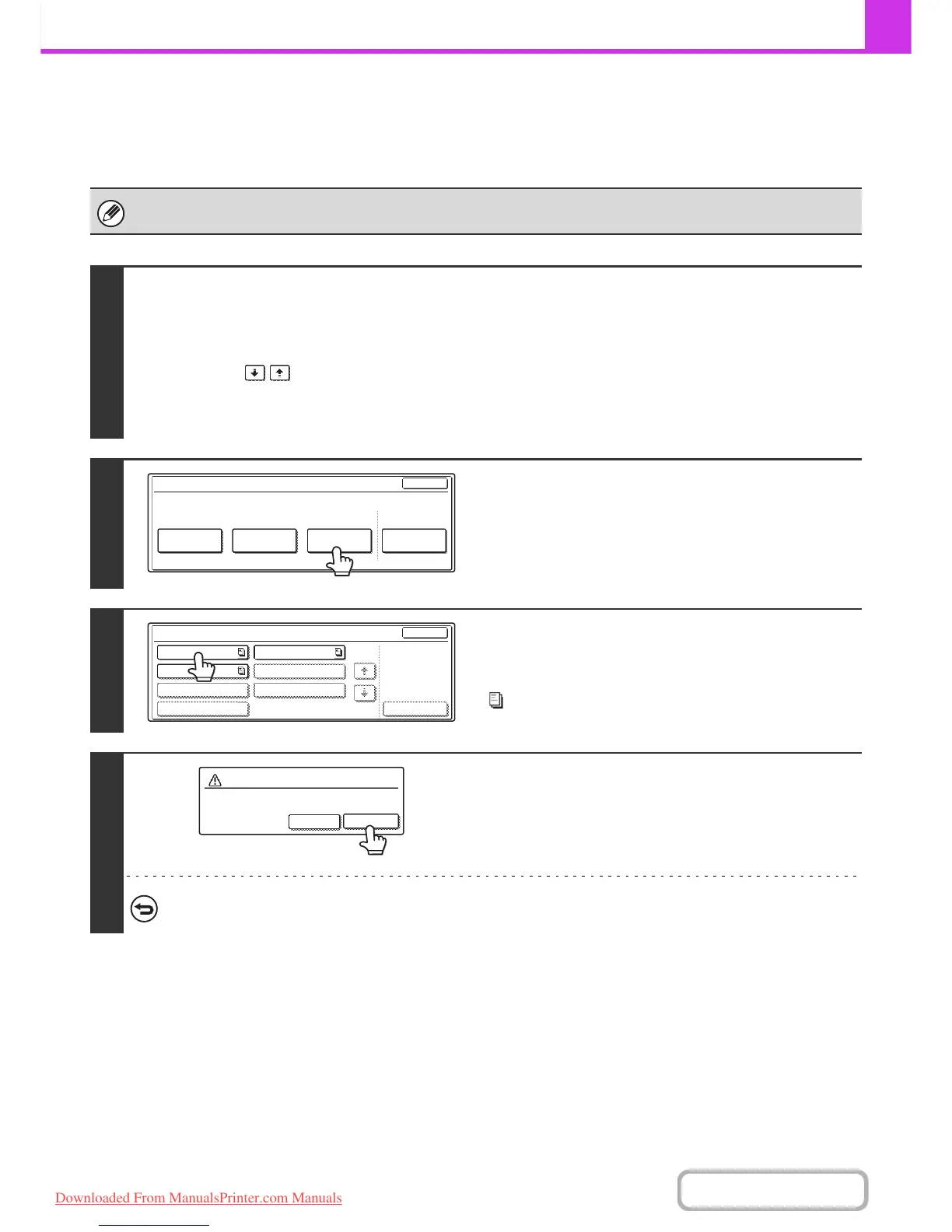 Touch the [No] key. You will return to the screen of step 3 without deleting the document.