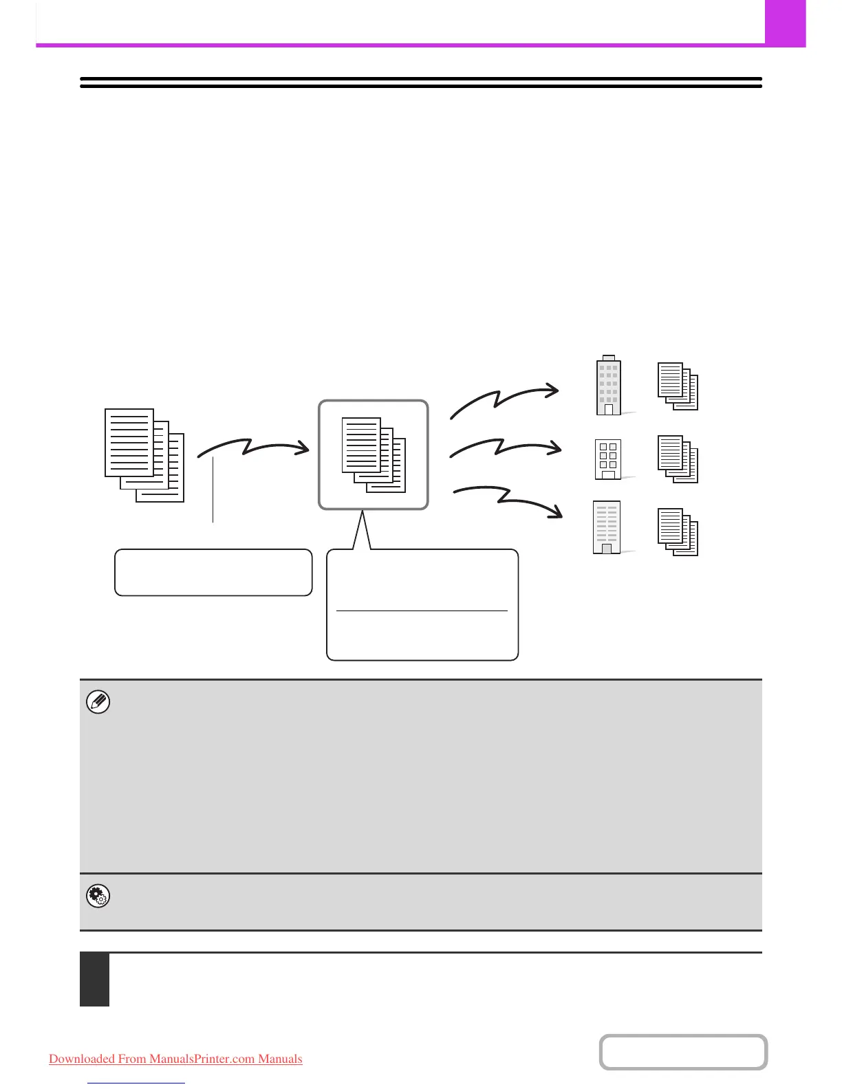 • Before this function can be used, the end receiving machines must be programmed in the F-code relay broadcast memory
