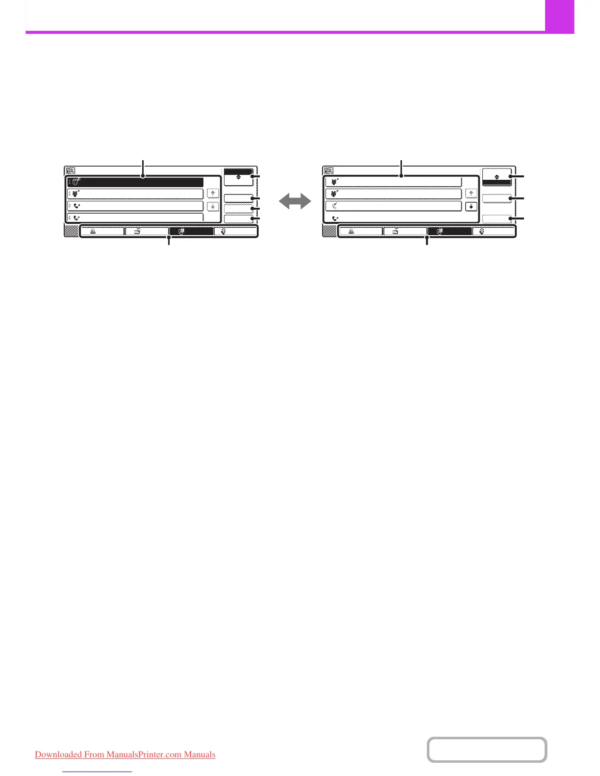 progress, and the completed jobs screen. To switch between the two screens, touch the job status screen selector key
