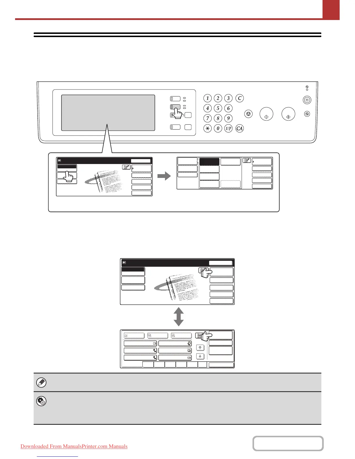 One of the following screens can be selected for the initial screen that appears when the [IMAGE SEND] key is pressed.
