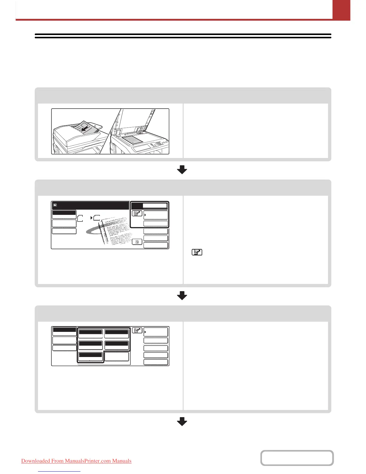 This section explains the basic procedure for scanning and transmission. Select settings in the order shown below to