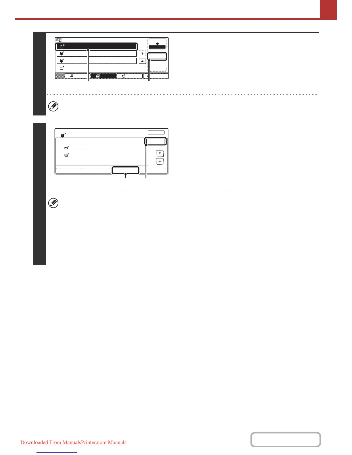 • If the [All Destinations] tab is touched in (1), all destinations will be displayed. The [Retry] key that appears in the