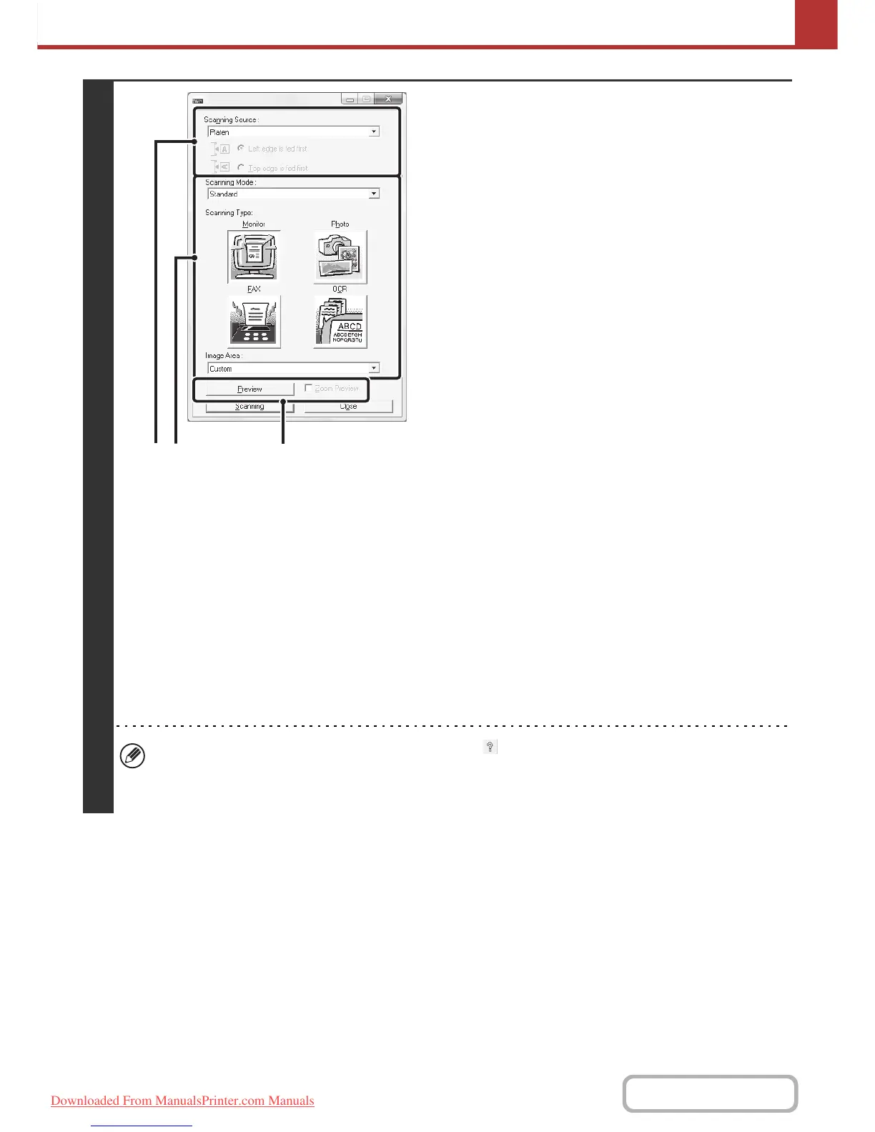 • For further information on the scan settings, click the button in the preview image screen of step 7 to