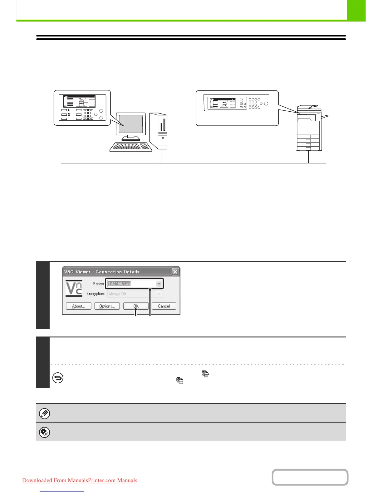 To use the remote operation function, the machine must be connected to a network and a VNC application must be