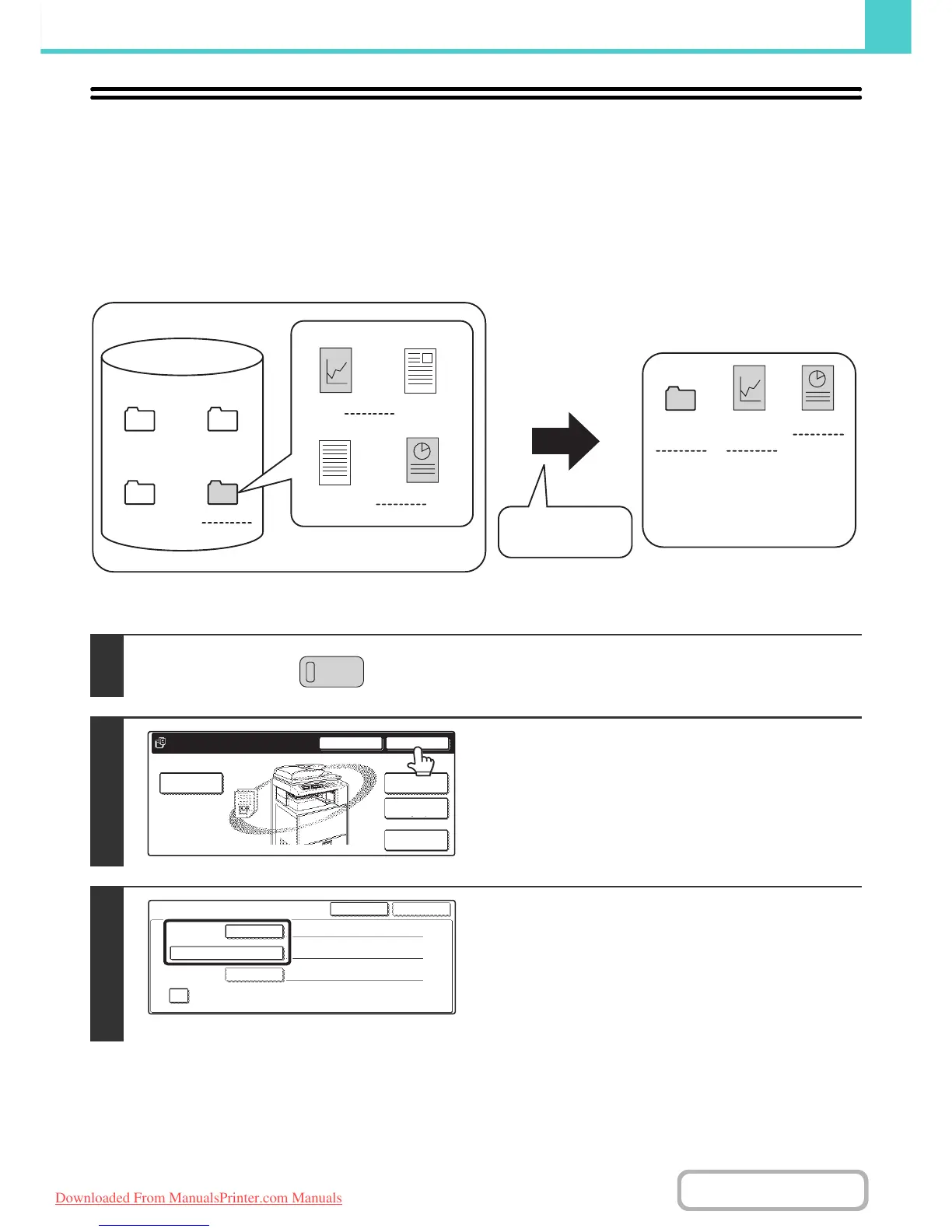 When there are many stored files, it may take time to find a file. The search function of document filing mode can be
