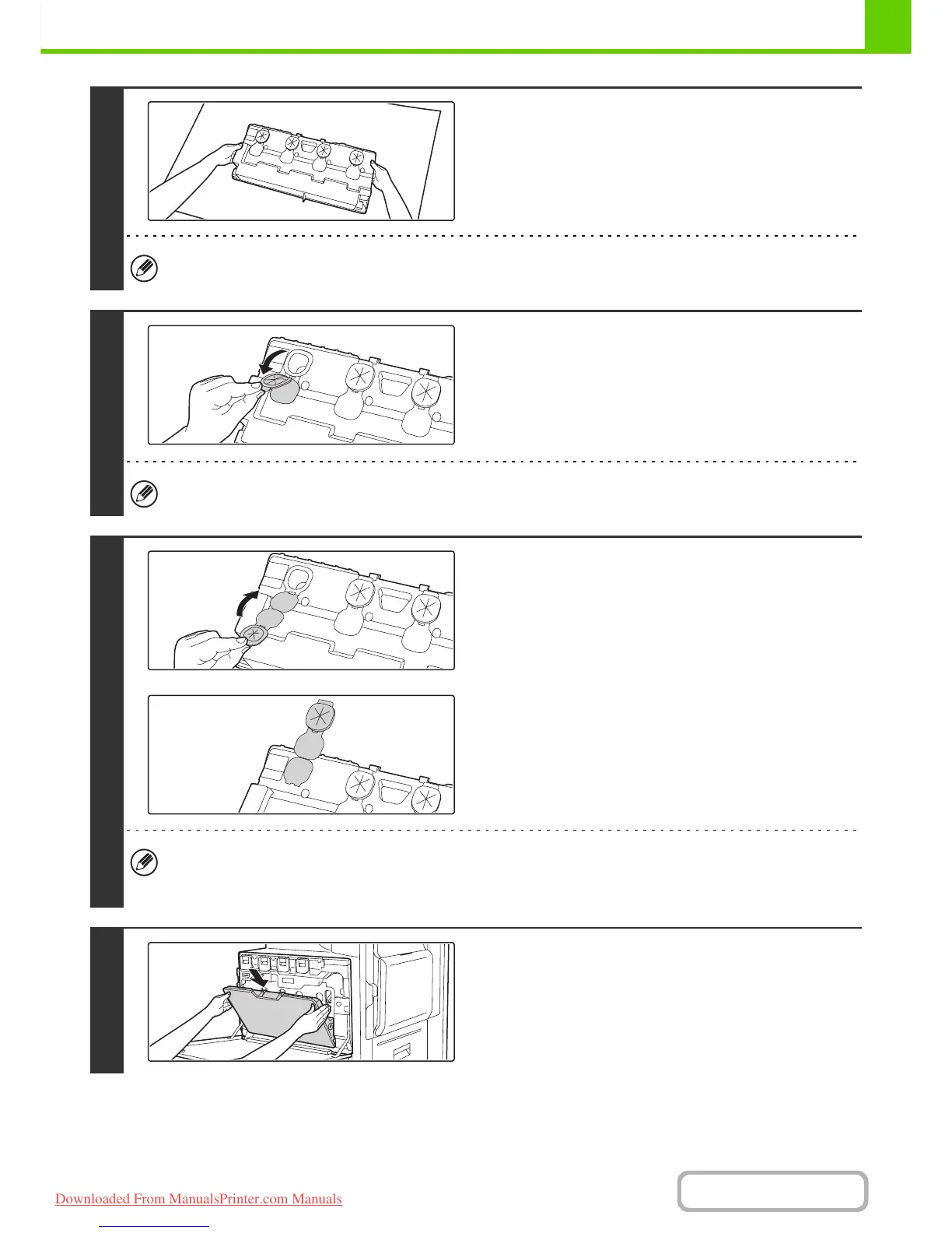 Do not point the holes down as used toner will spill out.