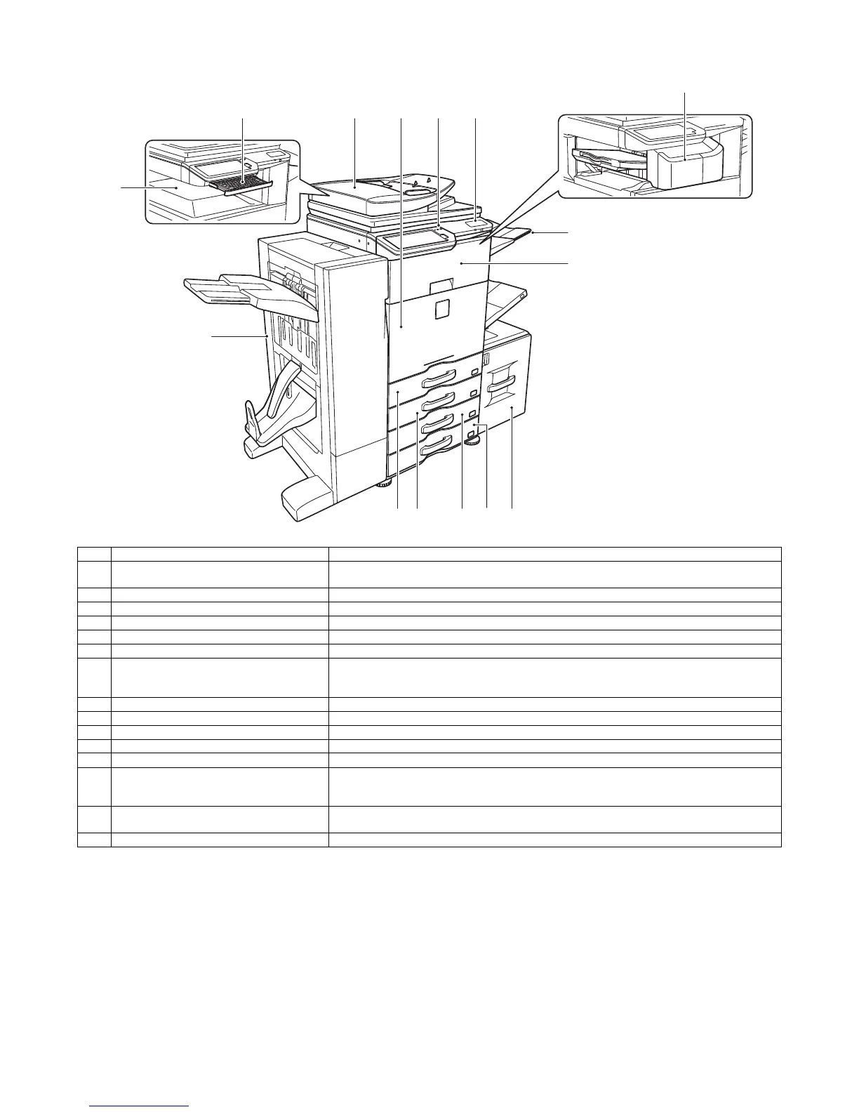 6 Finisher* This can be used to staple output. A punch module can also be installed to punch holes in output.