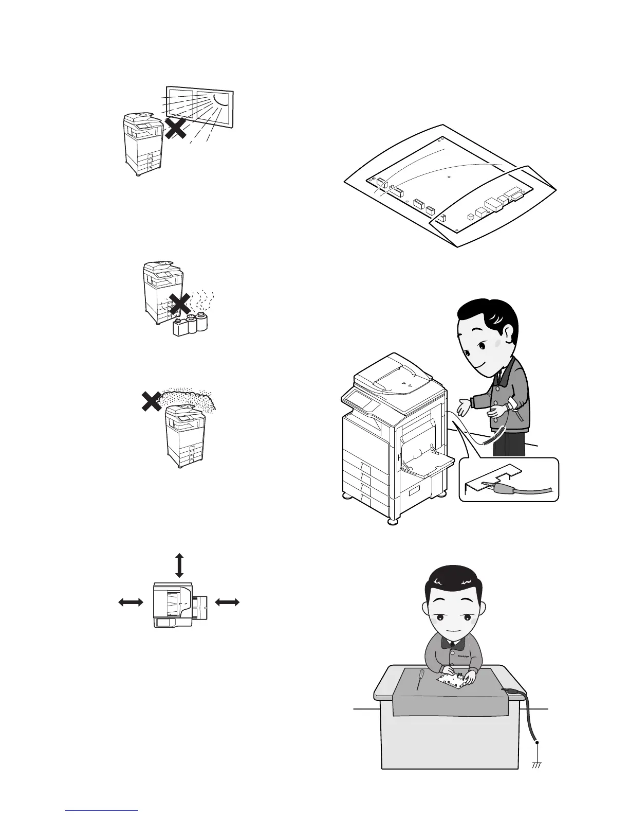 Sharp MX-2310U - Note for Handling PWB and Electronic Parts; Place of Direct Sunlight; Place of Much Dust; Place Near a Wall