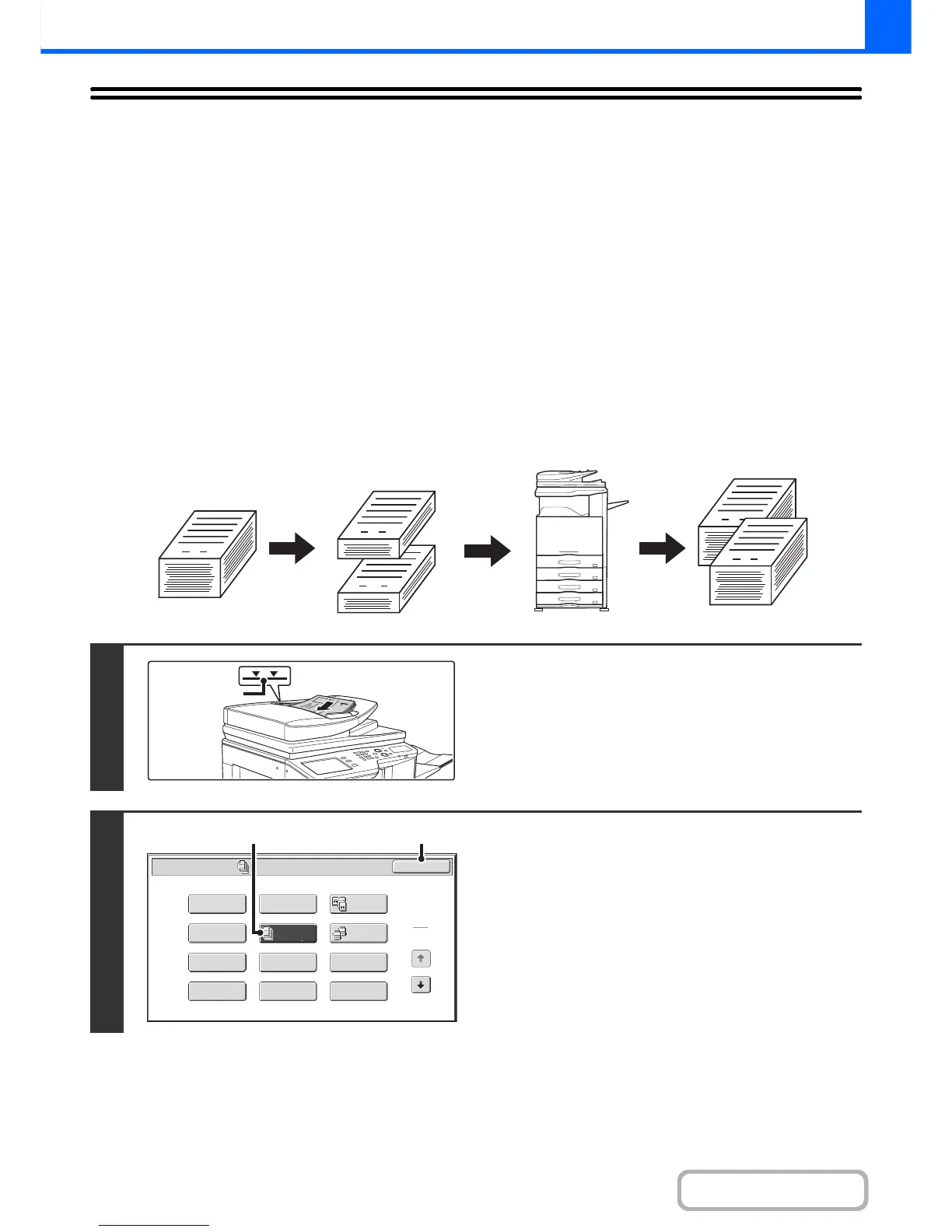 When copying a very large number of originals, this function allows you to divide the originals into sets and feed each