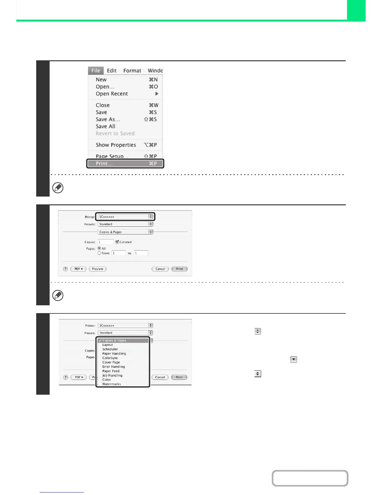 The machine name that appears in the "Printer" menu is normally [SCxxxxxx]. ("xxxxxx" is a sequence of characters
