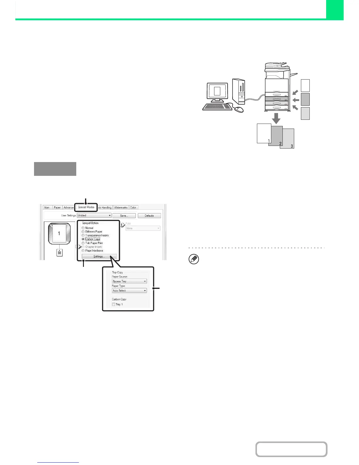 loaded in tray 2, a print result similar to a carbon copy