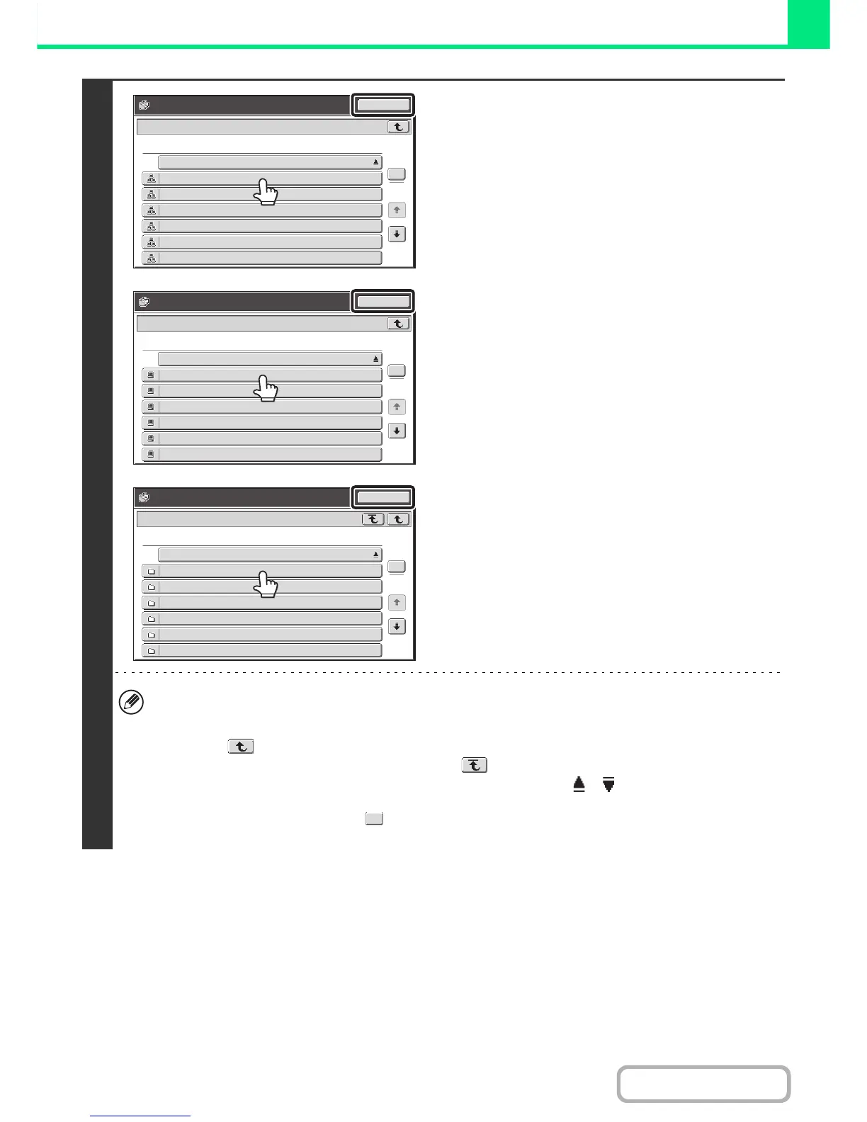 To change the sorting order of the displayed keys, touch the key that shows or in each screen. The order