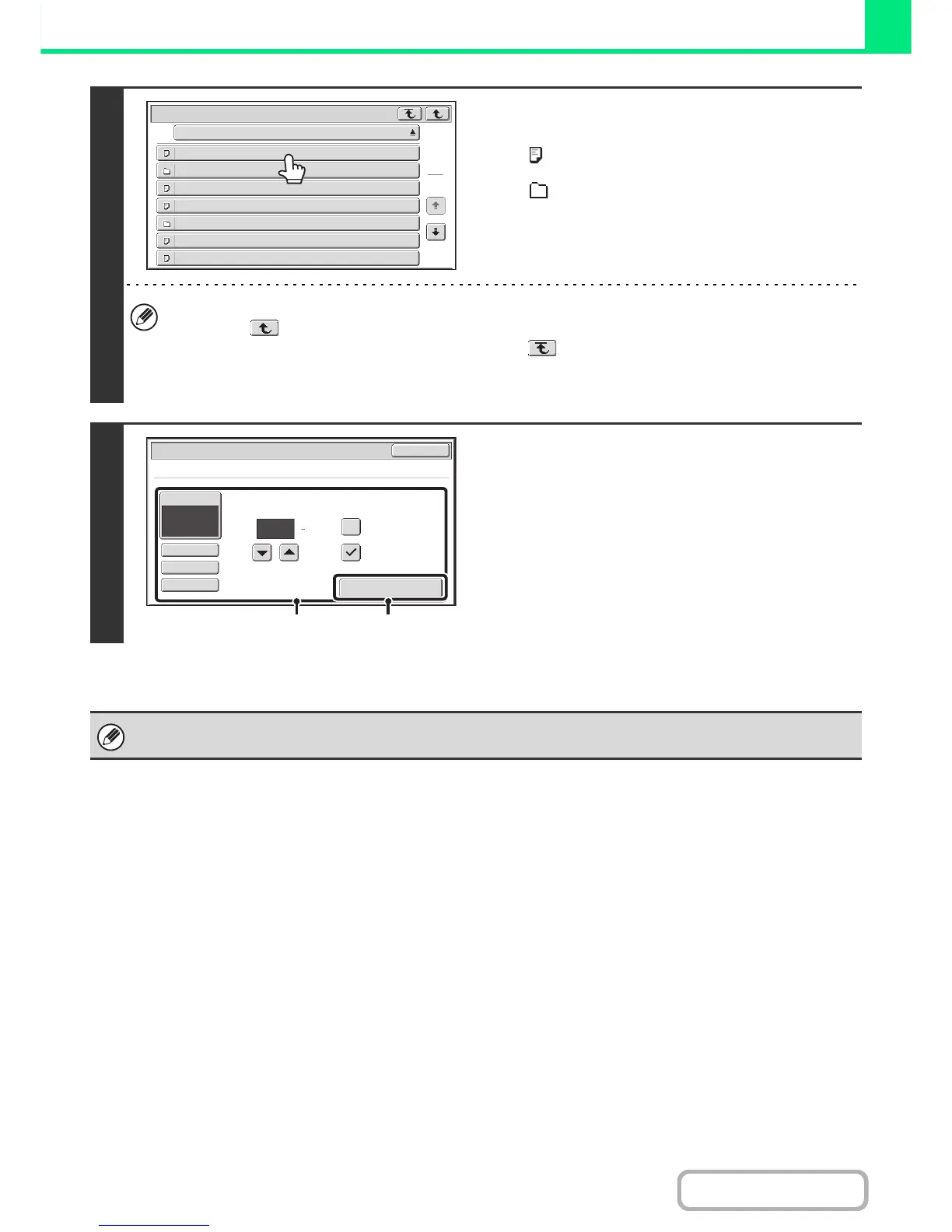 Touch the [File or Folder Name] key to change the order of the files and folders displayed on the screen. The order