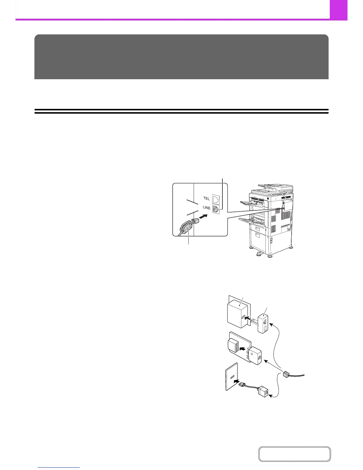 To use the machine as a fax, the telephone line must be connected and the type of line set.
