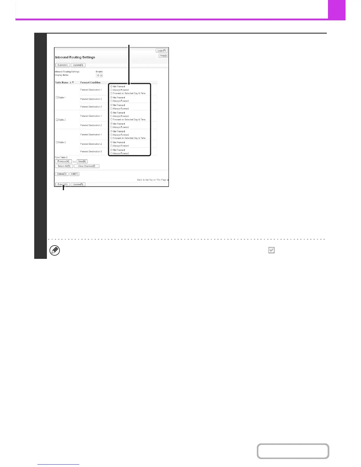 To delete a forwarding table, click the checkbox next to the table name so that it is selected and click [Delete].
