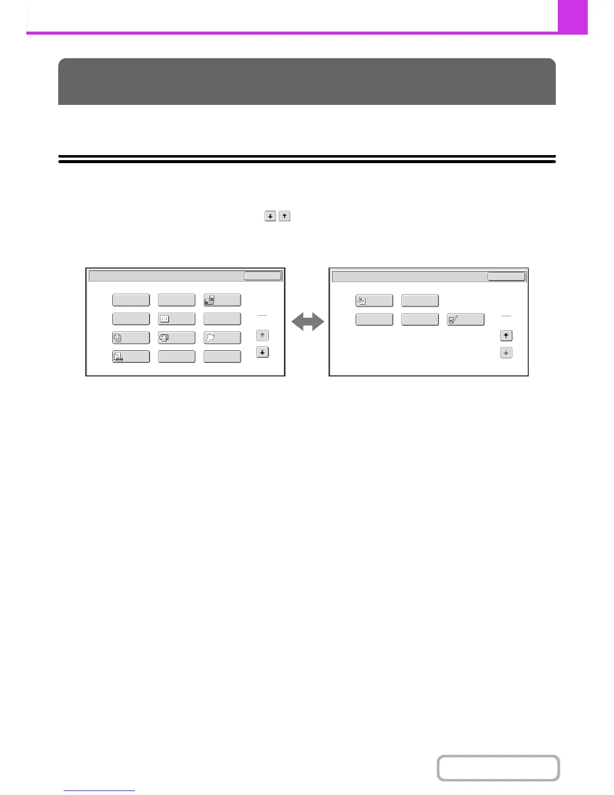 When the [Special Modes] key is touched in the base screen, the special modes menu screen appears. The special