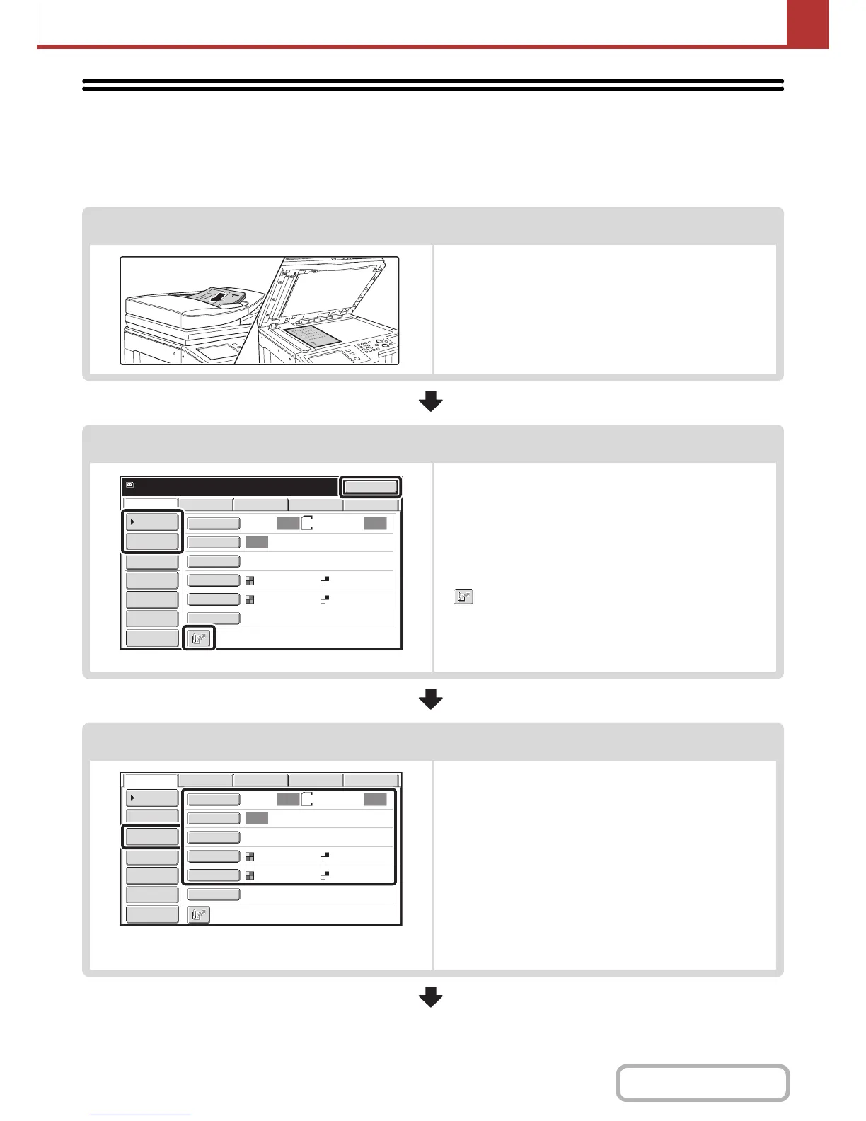 This section explains the basic procedure for scanning and transmission. Select settings in the order shown below to