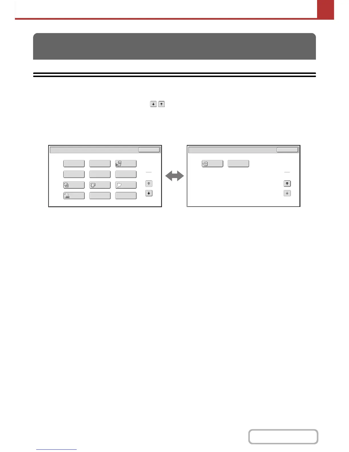 When the [Special Modes] key is touched in the base screen, the special modes menu screen appears. The special