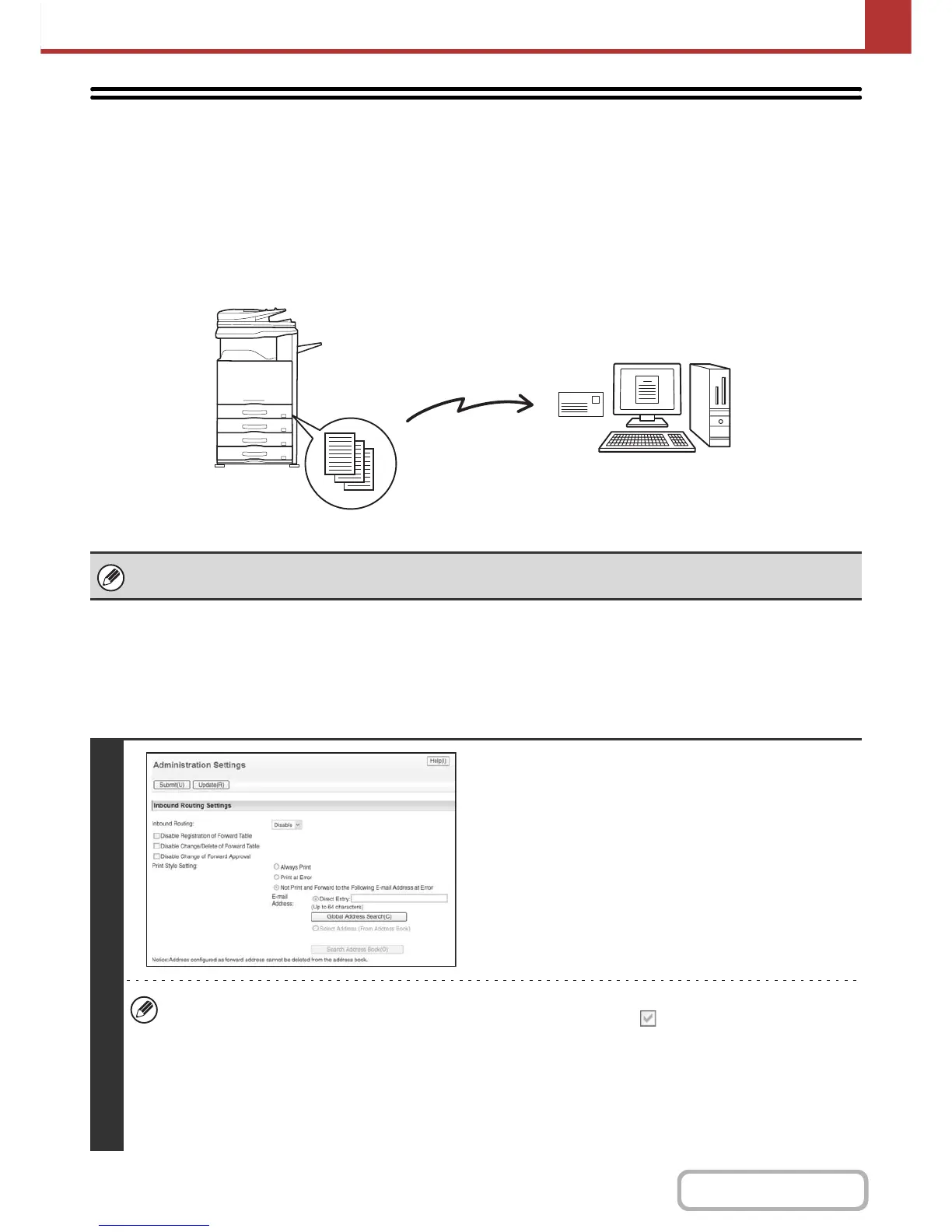 When inbound routing is enabled, you can also specify whether or not you wish the machine to print the forwarded faxes.