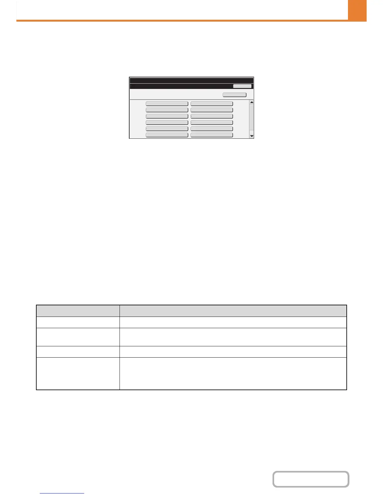 When the [Page Limit Group List] key is touched, the following screen appears.