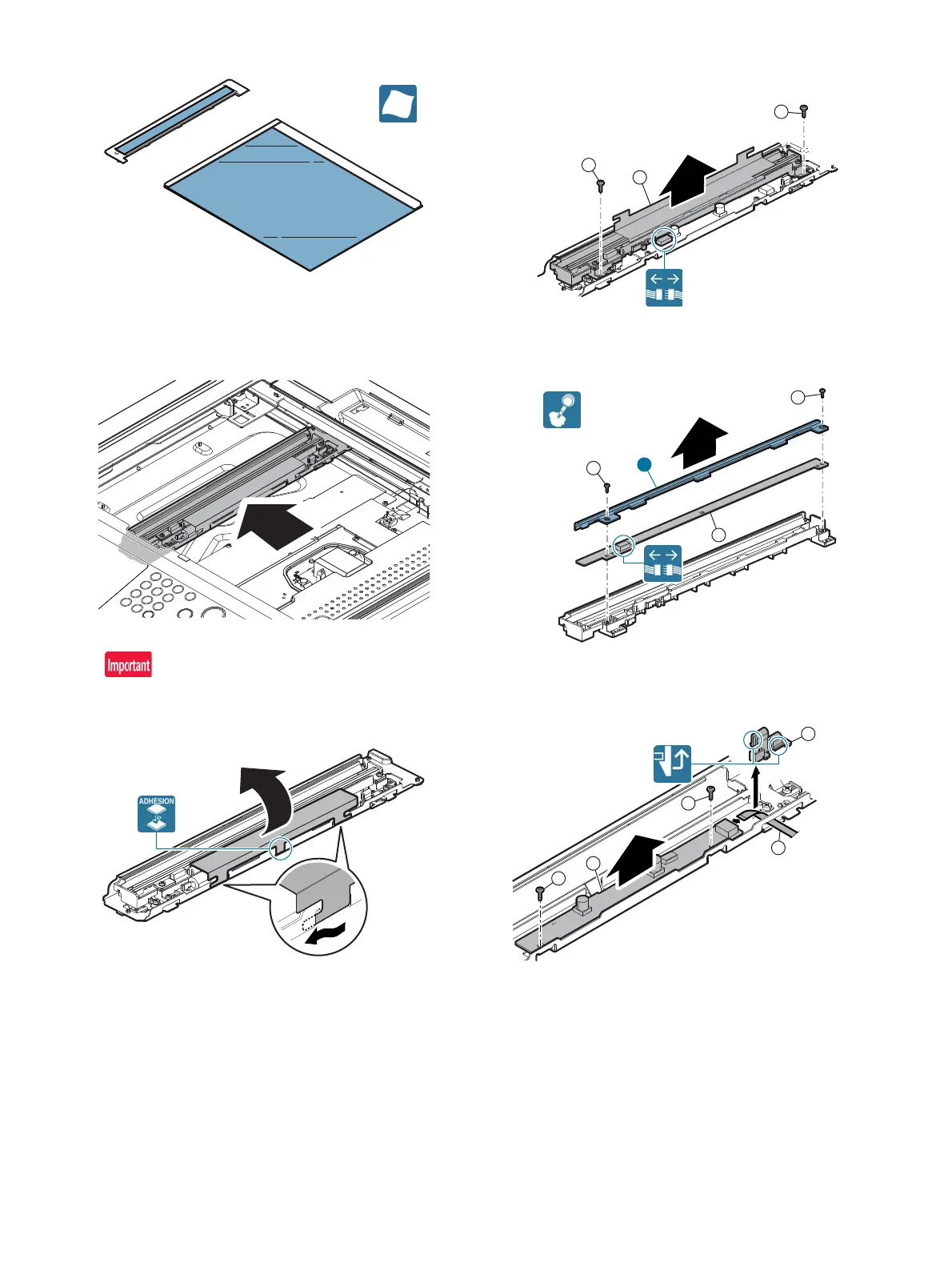 5) Remove the scanner lamp, and the LED PWB. Disconnect the